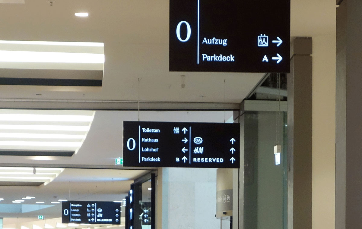 KUNDENLEITSYSTEM: Beschilderung der Shopping-Mall inkl. Parkhaus